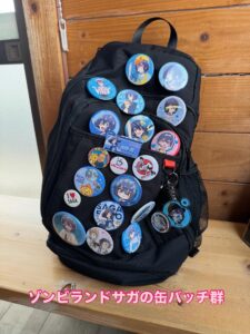 福ちゃんはゾンビランドサガがとっても好きで、愛用のバックにはたくさんのゾンビィの缶バッチがつけてあります。